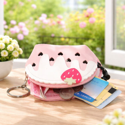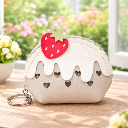 Un charmant porte-monnaie 11,2 × 14 × 4 cm en forme de gâteau à la fraise, pensé pour accompagner les enfants dans leurs premières économies avec douceur et style 🍓