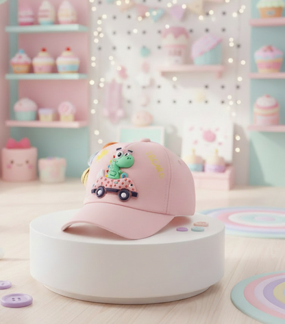 Cette casquette enfant est bien plus qu'un simple accessoire : c'est une invitation à l'imagination ! Avec son dinosaure 3D tout mignon qui conduit une voiture à pois et ses drapeaux colorés (orange, bleu ciel et jaune), elle apporte une touche de fantaisie et de gaieté à toutes les tenues.